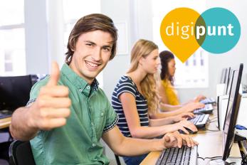 In een Digipunt kan je gratis een computer met internet gebruiken en staat een begeleider klaar om je te helpen bij digitale vragen.